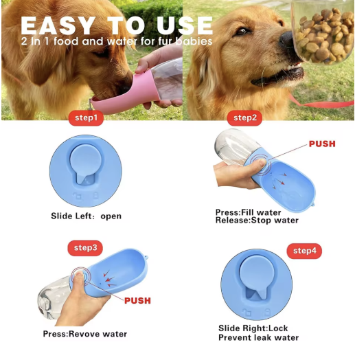 Lleva la hidratación y alimentación de tu mascota a cualquier lugar con la Botella Portátil 2 en 1 para Perros y Gatos. Diseñada con doble compartimiento para agua y alimento, es perfecta para paseos, viajes o aventuras al aire libre. Su sistema antiderrames y diseño ergonómico la hacen práctica, segura y fácil de usar.